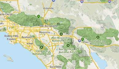 This region contains two CA State Parks (Anza Borrego Desert SP and Mt. San Jacinto SP), with other land managed by the State Park Service. There are vast areas of federal land, including the San Bernardino National Forest, managed by the US Dept. of Agriculture, and other areas under the Dept. of Interior’s Bureau of Land Management. Nearby is Joshua Tree National Park, managed by the National Park Service.